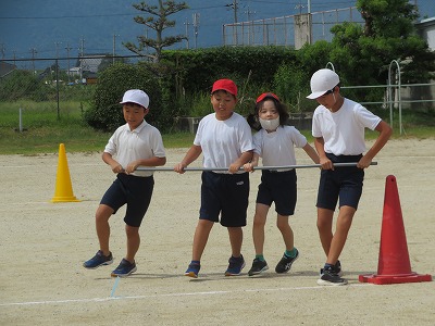 みんなで走って、回って、とんで、しゃがんで、大忙しですが、笑顔がいっぱいの種目です!