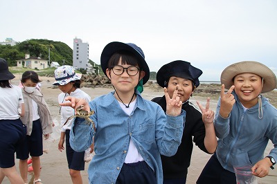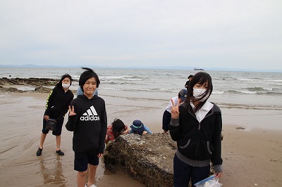 次は、海岸の散策です。思い出に貝をっ拾ったり、砂浜で遊んだりしました。