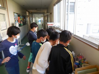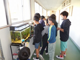 4年生のお魚クラブがメンバー募集のポスターを張ってから1か月以上たちましたが、なんとこのたび3年生の新メンバーが誕生しました。今見習い修行中です。餌のあげ方、魚の健康状態の観察など、教えてもらいながら、楽しそうに参加してくれています。今日は残念ながらお魚さんが亡くなりました。その対応についても教えてもらっていましたので、その様子をパチリ!子どもたちが自分たちでできることを増やしているこの状況、素敵ですよね。