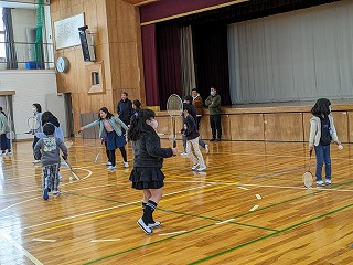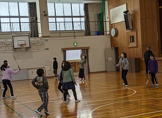 児童会の企画で、体育館を有効利用するために、試験的に今日(12月18日)から3日間、昼休みの時間に「バスケットボール」「バドミントン」ができるように、体育館を開放することにしました。決まりを守って、みんながバスケットボールやバドミントンで楽しみました。