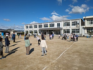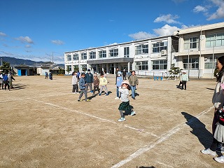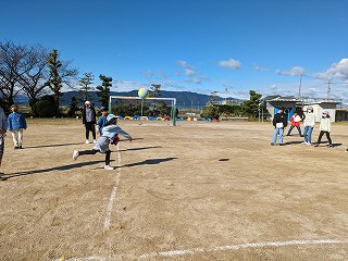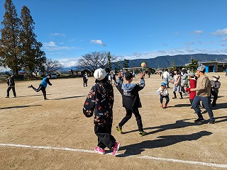 冷たい風が吹く中、みんな楽しんでいました。高学年が低学年の子にボールを譲ってあげる光景を何度か見ました。とっても温かい気持ちになりました!