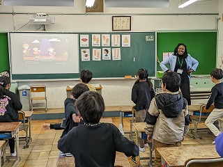 今日のめあては「体の部位の名前を覚えよう」でした。はじめに「ホーキーポーキーの歌」に合わせてダンスをしました。みんな、楽しく体の部位の名前を覚えることができました。