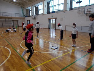 3年松組の体育の授業の様子です。なわとびの練習をしています。先生が、「練習してもなかなか跳べない、ダメだと思うのではなく、跳べるためのエネルギーを蓄えているときだと思ってください。心配しなくてもいいですよ。エネルギーがたまれば、跳べますよ」とおっしゃっていました。2人か3人一組になって、それぞれの跳び方を練習しました。