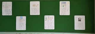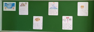3年松組の背面掲示板です。国語の「冬のくらし」で身の回りで見つけた冬を感じたものについて絵と文で表しました。