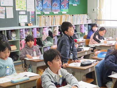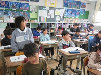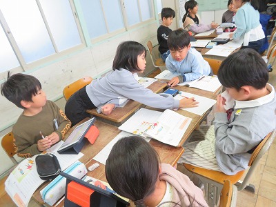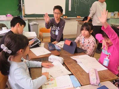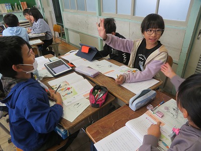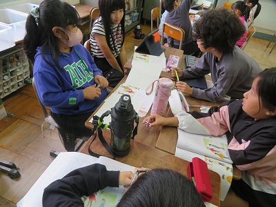 先生からの「自分の考えと違う意見が出たとき、どうすればいいでしょう」の問いには、グループで話し合いました。「気をつかって『別にいいよ』と言う」「みんなが楽しめるように、堂々と自分の意見を言う」「言ってみて、もしだめだったら考えをゆずる」「自分だけじゃなくて、ほかの子も違う意見かもしれないのだから、伝えてみる」などの考えが各班でまとまりました。ここで時間がきてしまいました。続きは後日みんなで話し合う予定です。
