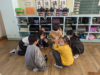 5年松組では、4つのグループに分かれてカードゲームをしていました。朝の会のときに、立南タイムでやることを決めていました。
