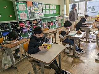 2年松組、3年松組では、本を読んでいました。