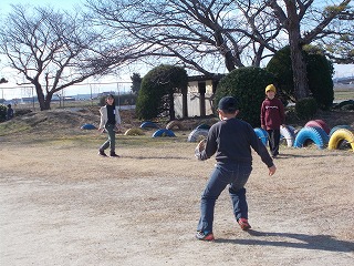 、縄跳びの練習をする子、大谷選手から寄付されたグローブを使ってキャッチボールをする子など、いろいろです。学年を超えていっしょに遊ぶことができるのも、立南小のいいところです。