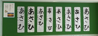 3年松組の背面掲示板です。冬休みの課題で書ぞめがありました。みんなの作品が掲示してあります。どの作品も力強いですね。