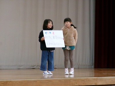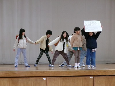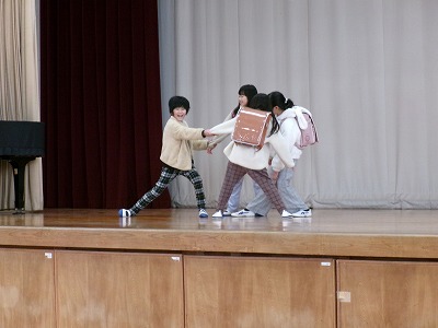 延期になっていた3年生の有志による「この指とまれ!プロジェクト」が、立南でもタイムで行われました。「不審者対策の劇」でした。