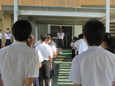 昨日の朝は、久しぶりの「全校朝礼」を行いました。