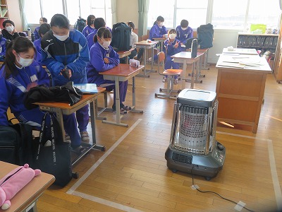 昨日から、2年生の各教室にストーブが用意され、朝から早速「点火」されました。