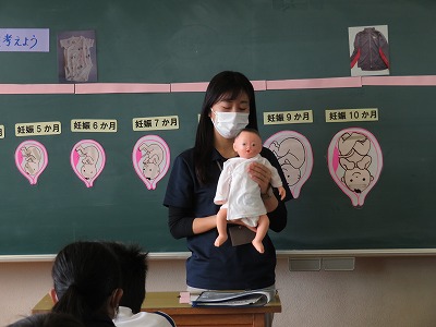 養護教諭と保健師さんからは、赤ちゃん誕生までの過程について教えてもらいました。
