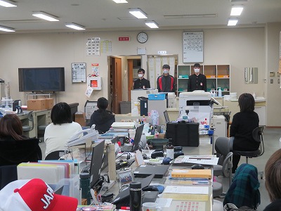 先週、2年生の3人の生徒が、職員室に挨拶に来ました。