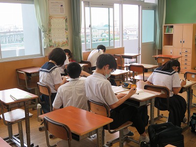 ちなみにこの「学習会」は、今日の授業後にも1年生が開催予定です。特に1年生は「中学初の定期テスト」ということで、勉強の仕方や要領に見通しがもてない子も多くいると思いますが、明日からのテストで納得がいく成果が収められるよう精一杯の頑張りを期待しています!