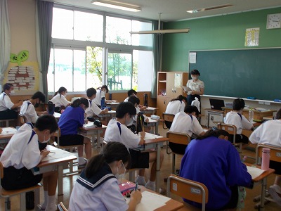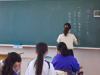 実は、昨日の道徳から、学校全体で「ローテーション道徳」というものに取り組んでいます。普段は、担任の先生が自分のクラスで道徳を行うのですが、この「ローテーション道徳」では、担任以外の先生が教室で道徳をやったり、担任の先生が他のクラスで道徳をやったりします。そのことで、お互いの授業を見合う機会を増やすとともに、自分の授業もいろいろな人に見てもらうことができ、授業作りで気付いたことを伝えあってお互いに授業力を高めあうことを目的として取り組んでいます。