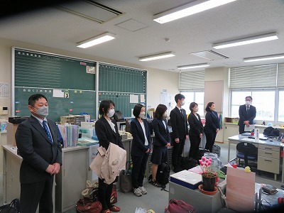 普段、なかなか考えることはないと思いますが、先生たちにとっても、4月は「新たな出会い」の時期。下の写真は、4月1日の朝、今年度本校に新たに赴任してきた先生たちが、職員に初めて挨拶をするまさに「出会い」の瞬間を撮影したものです。