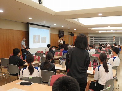 後半は、子どもたちからたくさんの質問があり、「質疑応答」で時間がいっぱいになってしまいました。授業の締めくくりでは、田島さんから「『疑う』こと、そして『知的探求心』を大切にしてほしい」というメッセージを伝えていただくことができ、田島さんのアツイ思いが子どもたちの心に深く響きながら終了となりました。