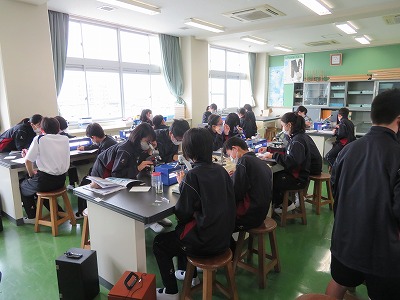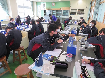 4月に中学生になった1年生の「理科」では、顕微鏡を使った観察・実験に取り組んでいました。「こっちの顕微鏡も見る?」と互いに声をかけ合いながら、楽しく協力し合う様子からは、少しずつ新しい学校生活に馴染んでいっていることが伝わりました。