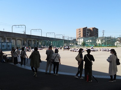 今年の体育祭は、学年ごとに分かれて、屋外競技・室内競技(体育館)・作品展見学をローテーションで行いました。