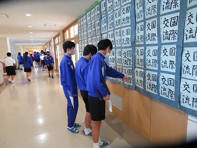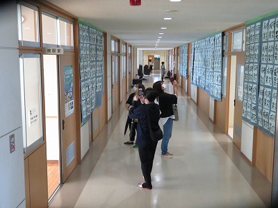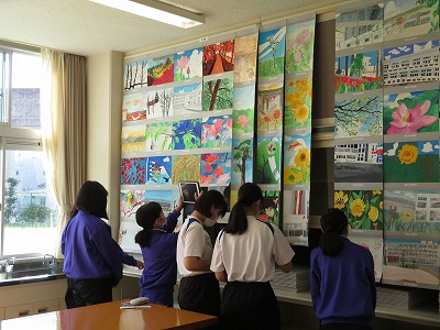 美術の授業で制作した生徒作品、習字、創作部や茶華道クラブの作品、夏の課題研究、PTA作品などが昨日と今日の2日間展示されました。生徒も保護者の皆様も、興味深そうに見学をする様子が見られました。「いいな」と思った作品をタブレットで記録したり、メモを取りながら見学したりする生徒もいて、今後の学びにつなげる様子も見られました。