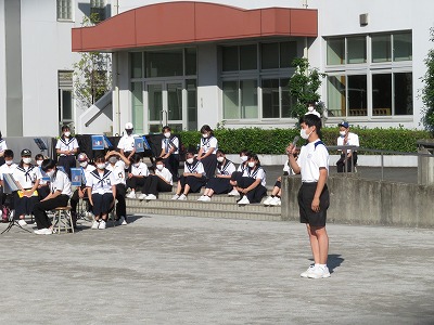 給食後の午後には、「吹奏楽部発表」が、感染症対策として屋外で行われました。吹奏楽部を始め、文化部の3年生にとって、この2日間の「学校祭」が締めくくりとなりました。