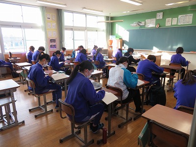 昨日は、私立高校・専修学校の推薦入試が行われ、学校ではいつもより少ない人数で授業を行いました。多いクラスでは10人ほどの席が空席となり、授業をしていた子たちも「本当に入試本番なんだ」と実感していました。