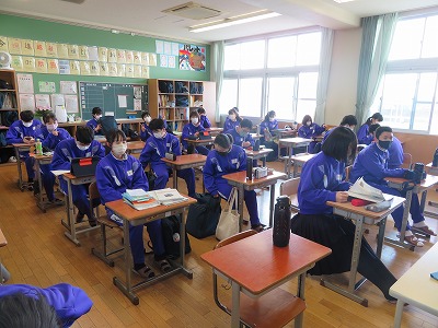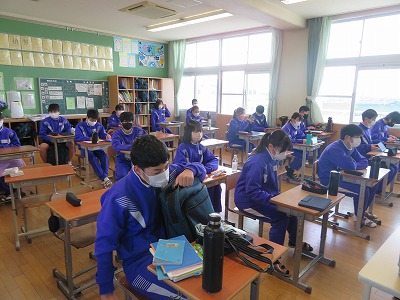 まだまだ全クラス「勢ぞろい」とまではいきませんが、教室に子どもたちの声や笑顔が戻ってきたのは本当に嬉しいことです。ちなみに、体は元気でも登校ができない生徒について、希望者はオンラインで授業を視聴して学習を一緒に進めていますが、放課には友達と楽しく会話する様子もあって、人と「つながる」ことの大切さや喜びを、改めて感じることができているようです。