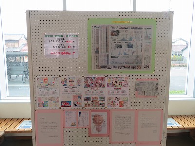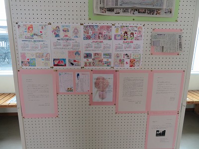 また、本校生徒の有志で作成をした「応援カレンダー」も掲示されていて、贈呈先からいただいたお礼の手紙なども掲示されています。