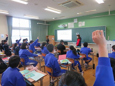 今のところ最も活躍しているのは、各教室に設置されたプロジェクターです。先生方が今まで紙に印刷したり、大型テレビをわざわざ運んで映したりしていた資料や教材を、次から次へと手軽に子どもたちに提示することができて、ほとんどの授業で使われています。