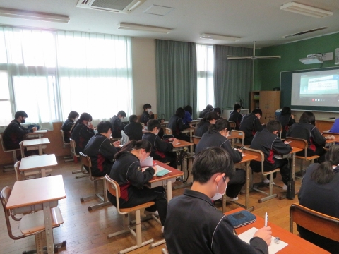 先週の月曜日には、全校で「人権集会」を行いました。本来はランチルームに全校生徒が集まって実施をする予定でしたが、感染症拡大が心配という声を受けて急遽オンラインで各教室とつないでの実施となりました。