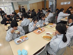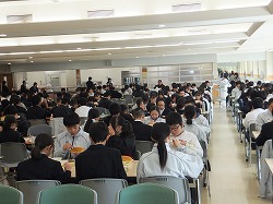また、少しほっとした表情で給食のパンを食べたり、会話を楽しみながら給食を食べる姿がいたるところで見られました。