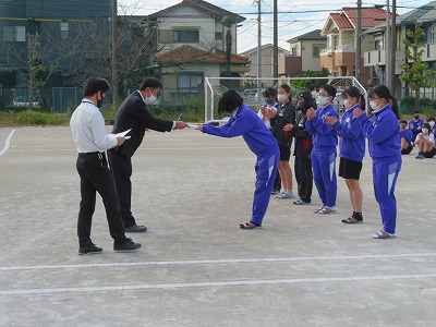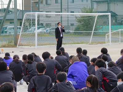 なお、避難訓練の後には、全校生徒が集まった機会を活用して、後期の生徒会役員・学級委員・議員の認証式を行いました。お互いを思いやる温かい学校づくりのリーダーとして、今後ますます活躍してくれることを期待しています!