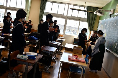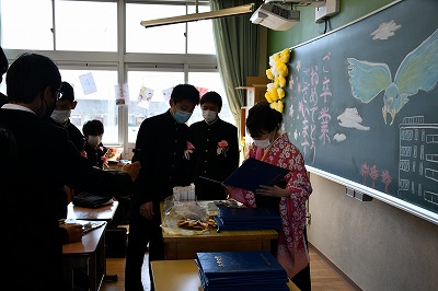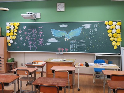 卒業式後は、それぞれの教室で最後の学級活動を行いました。いろいろなサプライズもあったようです。