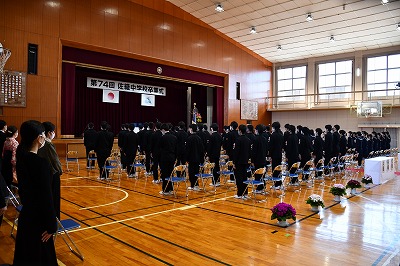 昨日の荒天から一転し、朝から文句なしの晴天に恵まれた中、第74回卒業式を挙行しました。