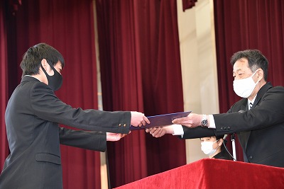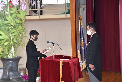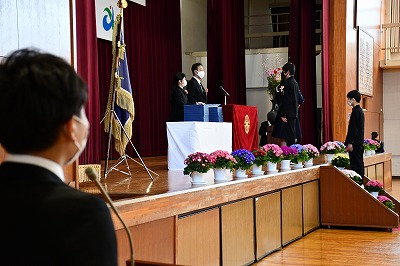 在校生の出席も代表生徒以外なし、卒業生の合唱もなしという、コロナ禍での制約を余儀なくされた今年度の式となりましたが、素直で一生懸命、そして誰からも応援された卒業生らしい心温まる式となりました。校長先生の式辞と併せて、ご紹介します。