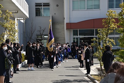 代表の在校生、保護者、先生方に見送られて、102名の卒業生が旅立っていきました。