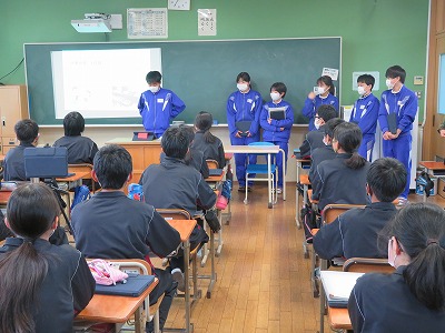 聞いていた1年生からも、「へー」「いいなあー」という声があちこちから上がり、自分たちが2年生になって実際に職場体験に行くのを楽しみに思う気持ちが大きくなっている様子が伝わってきました。