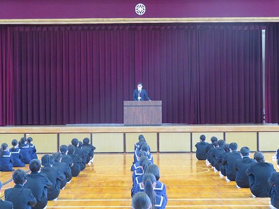 日本中がコロナ禍に翻弄された令和2年度でしたが、何とか今日「修了式」を無事迎えることができました。今日も換気、ソーシャルディスタンスを徹底して全校生徒が集まりましたが、整列したみんなの顔は、この1年での成長を感じさせる引き締まった良い表情をしていたのが印象的でした。なお、校長先生のお話は、以下に添付させていただきます。