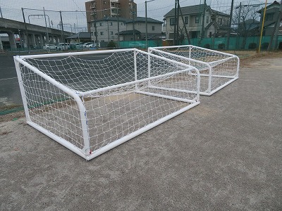 本校のサッカー用ミニゴールのネットが新しくなりました。