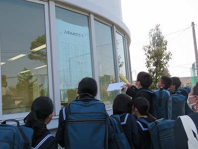 まずは、今日入学をした101名の新1年生が登校し、掲示を見て自分のクラスを確認しました。