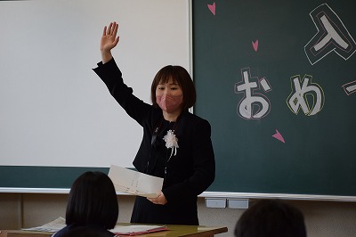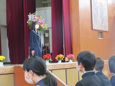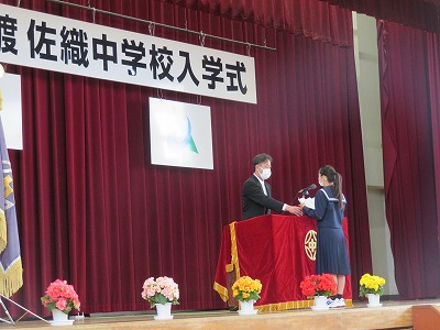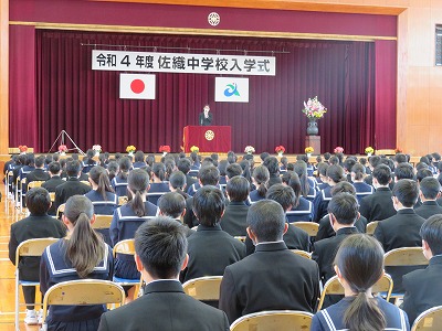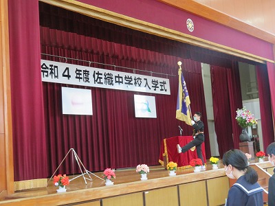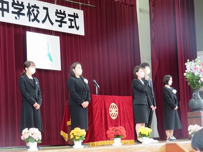 着任式後に行った「入学式」では、校長先生のお話を聞いた後に、3年生代表生徒の「生徒代表の言葉」と新入生代表の「誓いの言葉」があり、中学校生活への希望と期待がより一層高まりました。
