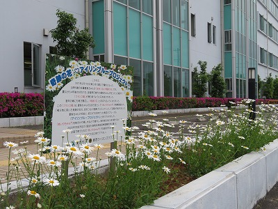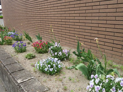 少し寂しくなったチューリップに変わって、来賓玄関前では「アイリンブループロジェクト」で3年前に植えた「フランス菊」が満開となって、ゴールデンウィーク明けでどことなく重い足取りで登校する子どもたちを、少し明るい気持ちにしてくれています。