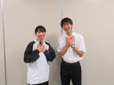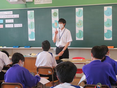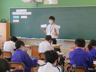 先週は金曜日が「オンライン授業参観」の代休だったため、木曜日が2週間実習で本校に来ていた2人の最終日でした。 4時間目には、最後の最後のまとめの授業をして、子どもたちに丁寧かつ懸命に教える姿が印象的でした。 最後の授業時間となった6時間目には、それぞれ担当していた2年A組とC組で「お別れレクリエーション」が行われ、また一つ授業とは違った思い出を子どもたちと作りました。 今回の実習は、緊急事態宣言が発令される中での実習だったために部活指導もできず、また普段の授業でも、たくさんの制約や気をつける点があり、例年行われている教育実習と比べると、本当に難しい実習になりました。そんな状況で得た「想い」を今後に生かし、一人でも多くの子を幸せにできる素敵な先生になってくれたらと願います。 最後に、緊張の2週間が終わった2人の気持ちをポーズで表現してもらい締めくくりとします。2週間、お疲れさまでした!