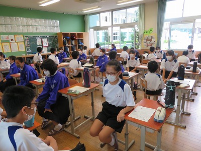 今日は、最初に担任から「実施にあたってのポイント」を伝えてもらってから簡単なトレーニングを行いました。これから、この「アサトレ」の時間だけでなく、どの教科や活動の中でも常に意識して「話し方」「聞き方」「心の姿勢作り」に取り組むことで、子どもたちにとって大きな力になっていくことと思います。