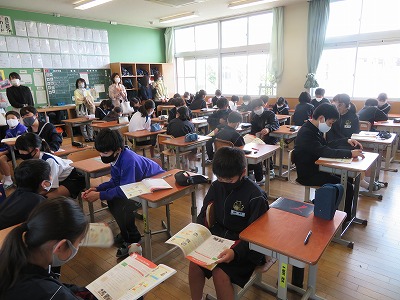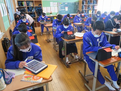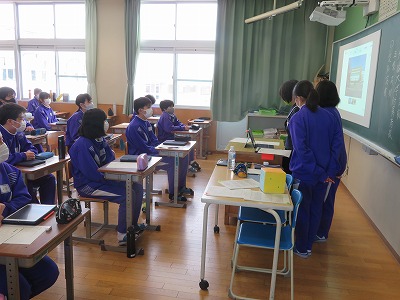 先週金曜日の午後は、今年度最初の「授業参観」と、その後には「学級PTA」を行いました。昨年度は臨時休業の関係で年度初めの授業参観ができなかったためか、多くの保護者にご来校いただき、子どもたちのがんばる様子を見ていただくことができ、嬉しく思いました。 中学校に入学して少しずつ慣れてきた1年生は、総合的な学習の時間を見てもらいました。 先輩になった2年生は、担任の先生が担当する理科・家庭・英語の授業。 最高学年の3年生は、進路学習に取り組みました。 どのクラスでも、今年度から設置されたプロジェクターやタブレットを活用した授業になっていて、参観されている保護者からも「いいですね」「昔からは考えられない光景ですね」と、たくさんのお声を聞かせていただきました。 授業参観後には、各教室で「学級PTA」が行われました。保護者同士の交流が少しでも深まる場になっていれば幸いです。 3年生は学級PTAの後に、ランチルームで「修学旅行説明会」を行いました。当日まで3週間と迫っていますが、まだまだ不安・不確定な要素も多い状況の中、現時点でお伝えできる部分について計画・対策について説明をさせていただきました。 感染症拡大の状況が予断を許さない中ですが、保護者の皆様のご理解とご協力をいただき各行事が開催できたおかげで、本格的に新年度を始めることができた、と感じる日になりました。 これからも刻々と変化する状況が続くと思いますが、学校と家庭が連携をして子どもたちのために全力を尽くしていけたらと願います。多くの方のご来校、ありがとうございました。