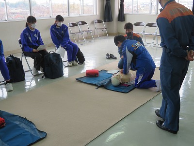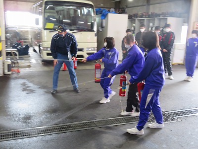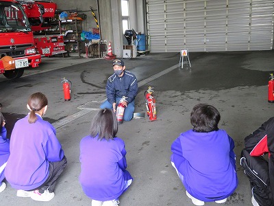 市が所有するバスをお借りして、1日1クラスずつ愛西市消防本部へ出かけ、消火器訓練、救命講習、ロープ結索法などを教えてもらいました。今年度はコロナ禍のため野外活動に出かけることができませんでしたが、生きて働く力をつける体験学習を何とか実施しようという学年の思いが、このような形になりました。