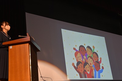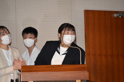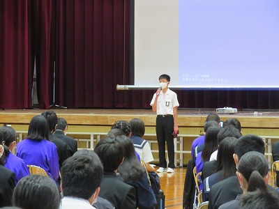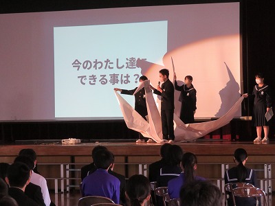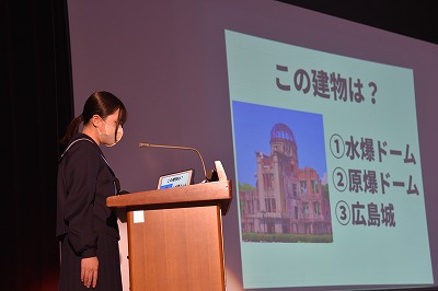 「広島派遣発表」「3年総合発表」では、それぞれの体験や学習の成果を発表しつつ、全校みんなに現代的課題について考えるたくさんのヒントや視点を与えてくれ、市役所からこの発表を見に来ていた方たちが「レベルの高い素晴らしい発表でした」「私たちも勉強になりました」と、とても感動して会場を後にされました。