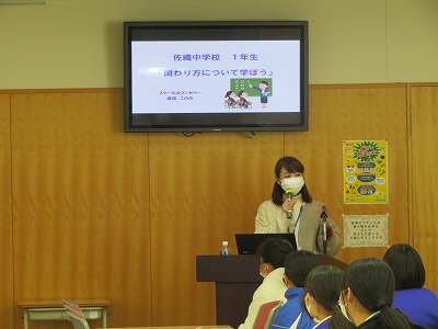 今週水曜日の6時間目には、本校のスクールカウンセラーが1年生に「かかわり方を考えよう」というテーマで授業をしました。