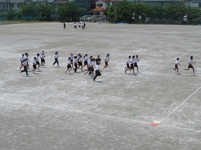 昨日は、少し湿度の高さも感じる薄曇りになったため、日中は「爽やか」という感じでなく、外では蒸し暑さを感じる1日になりました。そんな中で行われていた「体育」の様子を見てみると、少し負荷のかかる運動をする際にも、マスクをしたまま走る生徒が思ったよりも多くいました。